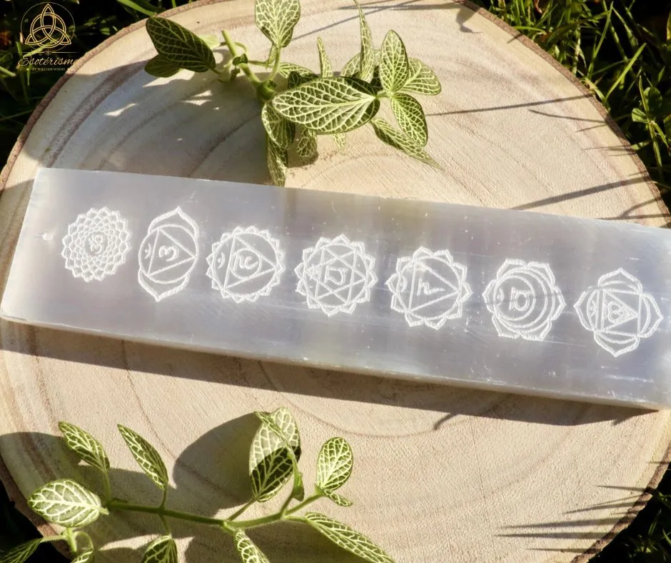La sélénite est directement liée au chakra coronal (Sahasrara), situé au sommet du crâne.