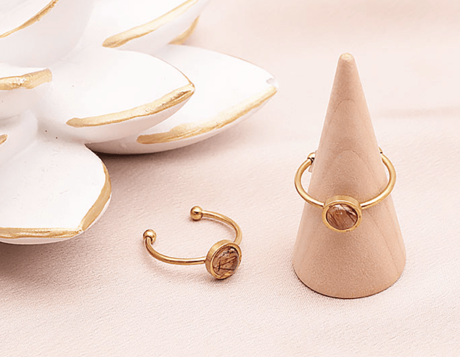 La monture dorée renforce la dimension solaire du bijou, symbolisant la lumière, la puissance et la confiance en soi. Ce contraste entre l’éclat du métal et la profondeur de la pierre crée un bijou à la fois raffiné et chargé de sens.