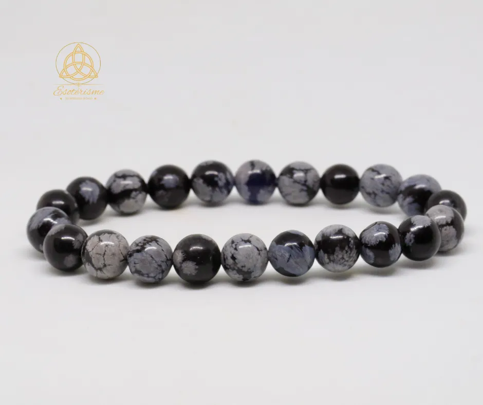 Bracelet boules 08mm Obsidienne Flocon de neige des Etat Unis A