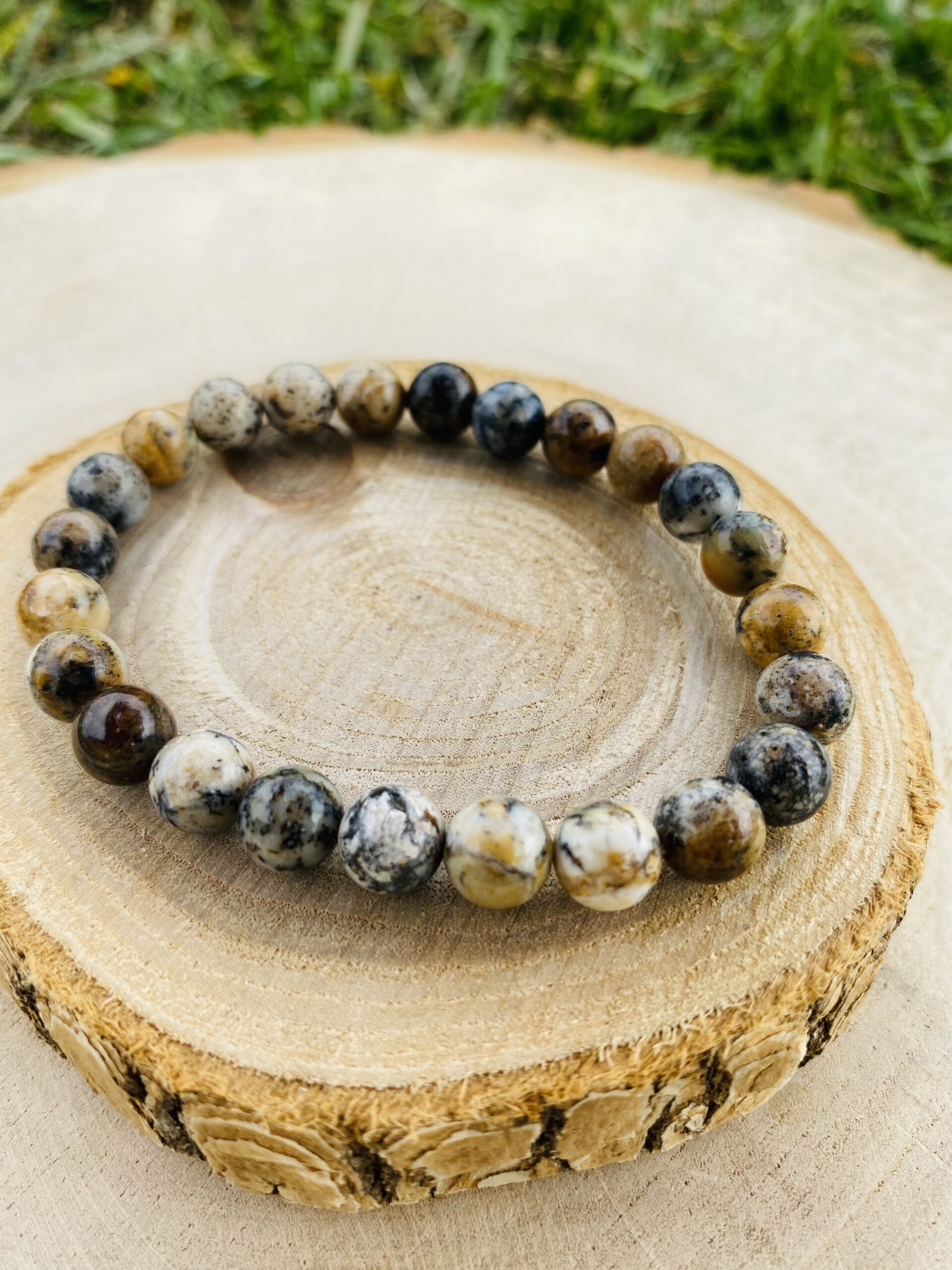 Bracelet boule agate dendrite : apaisement, ancrage & harmonie