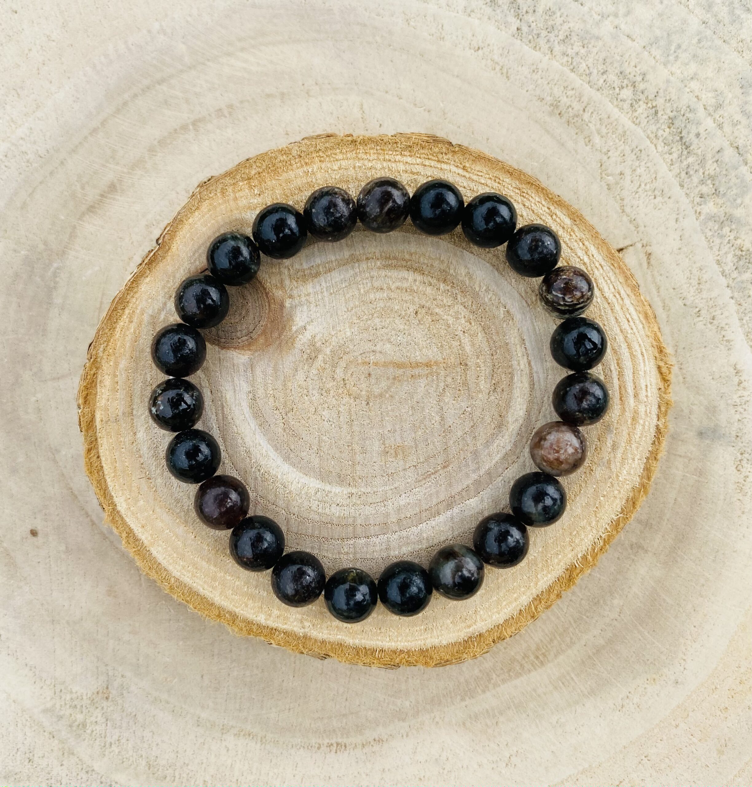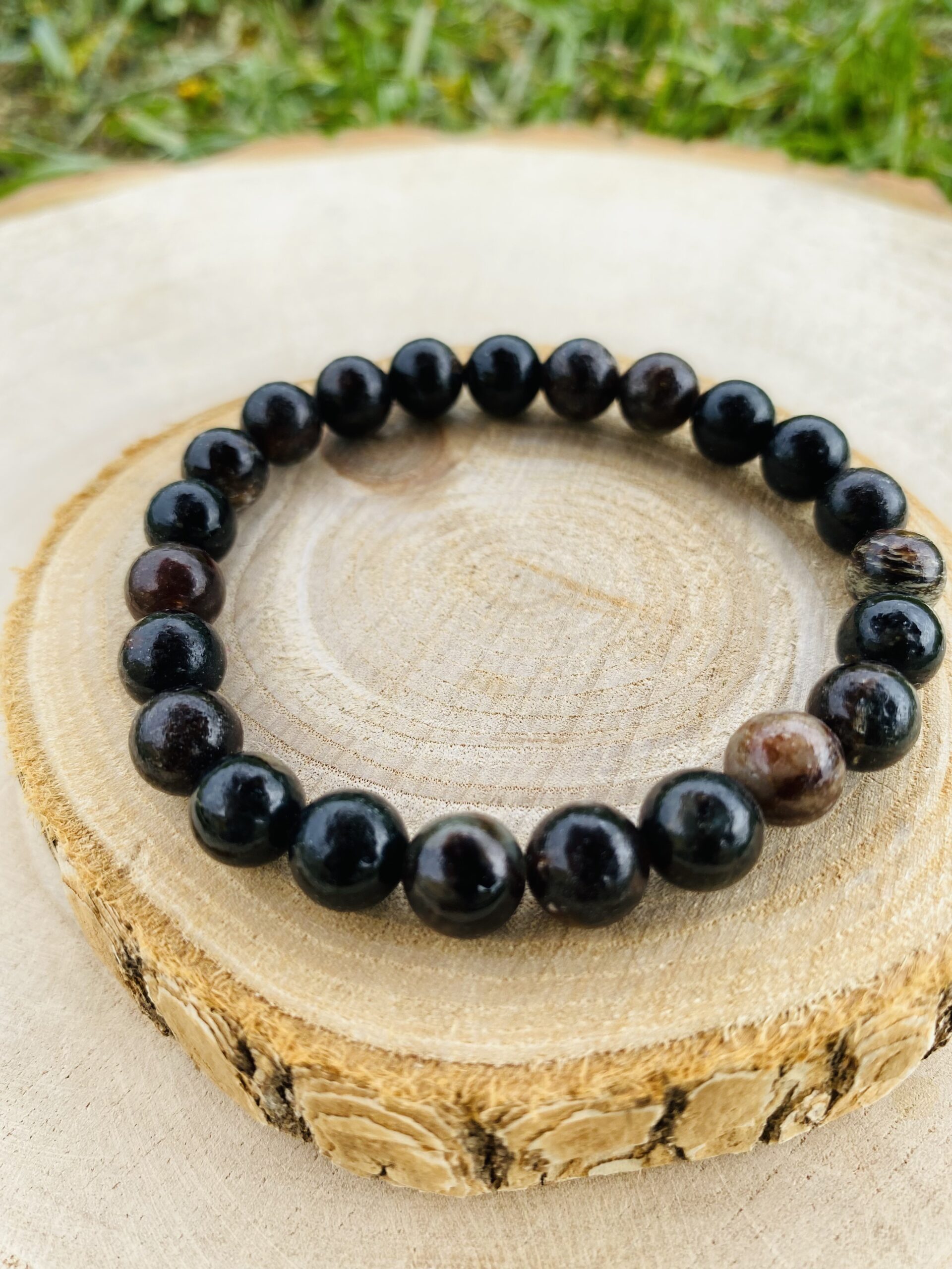 Le bracelet boule en bronzite naturelle est une pierre aux reflets bruns et dorés, reconnue pour sa puissance d’ancrage et de protection. En lithothérapie, elle agit comme un véritable bouclier énergétique tout en apportant calme et stabilité.