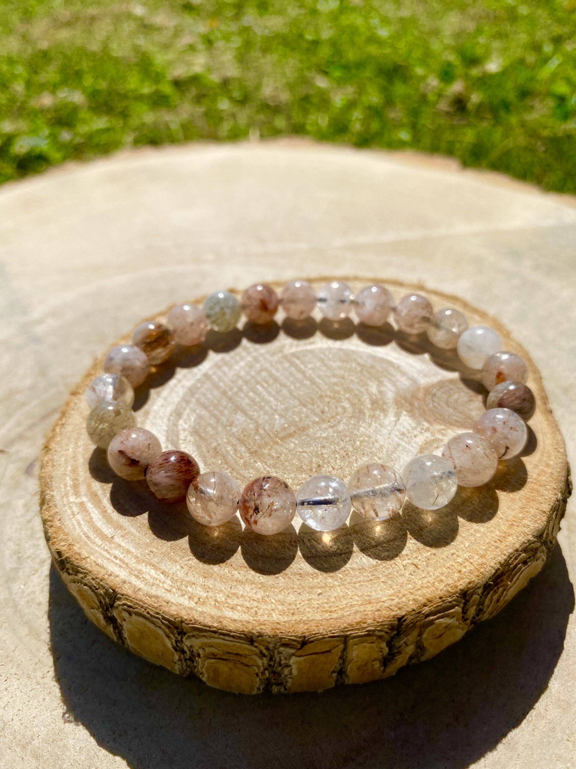Bracelet boule cristal de roche rutile rouge : énergie, clarté & puissance