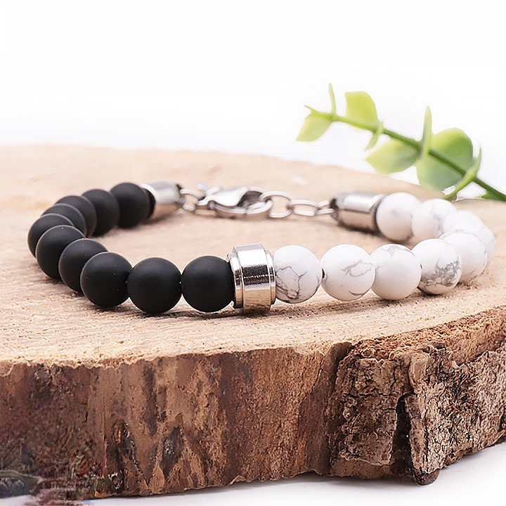 Bracelet UNYX howlite blanche et onyx – Force, équilibre et élégance masculine