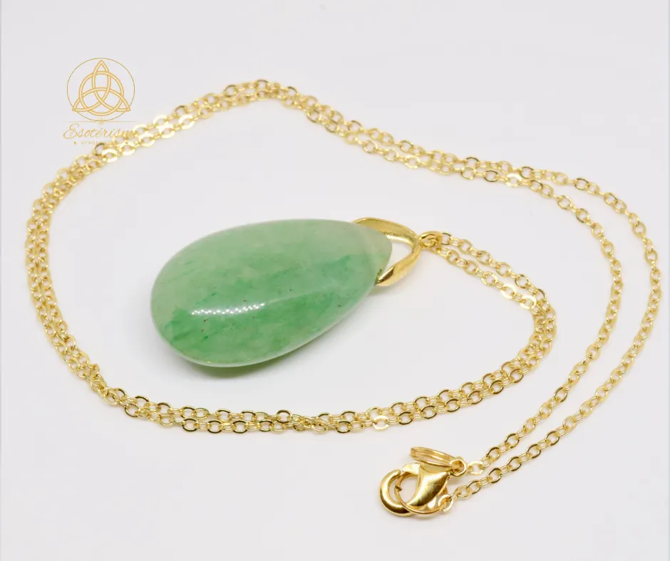 Accueil Boutique LITHOTHÉRAPIE Pendentif Goutte Sautoir en Aventurine verte