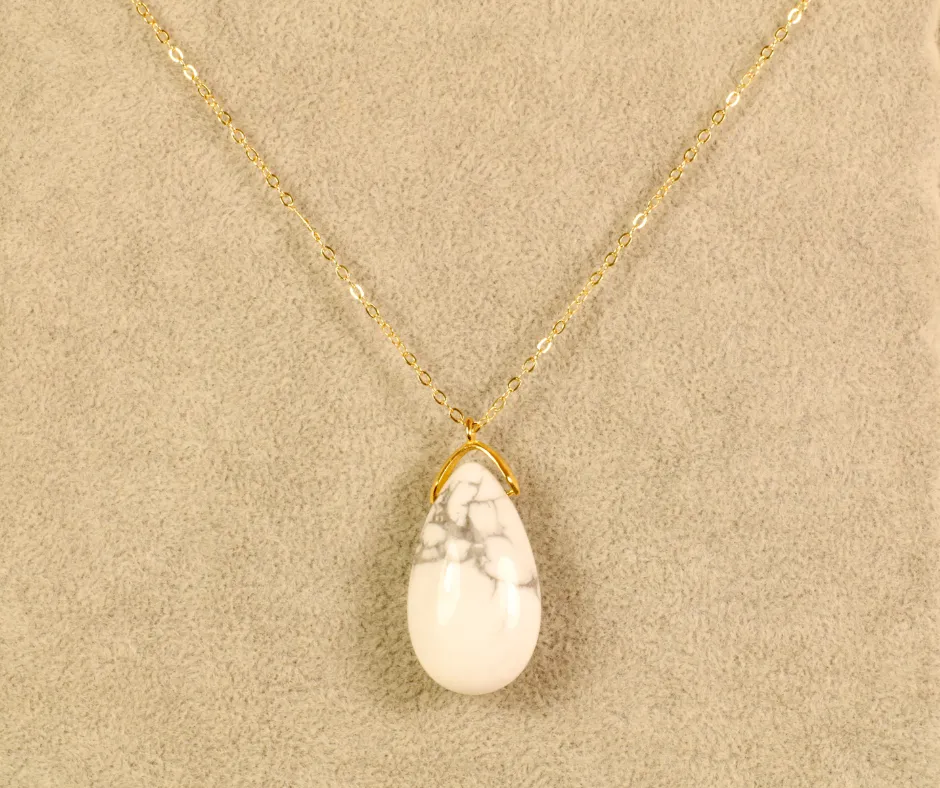 Accueil Boutique LITHOTHÉRAPIE Pendentif Goute Sautoir howlite A+
