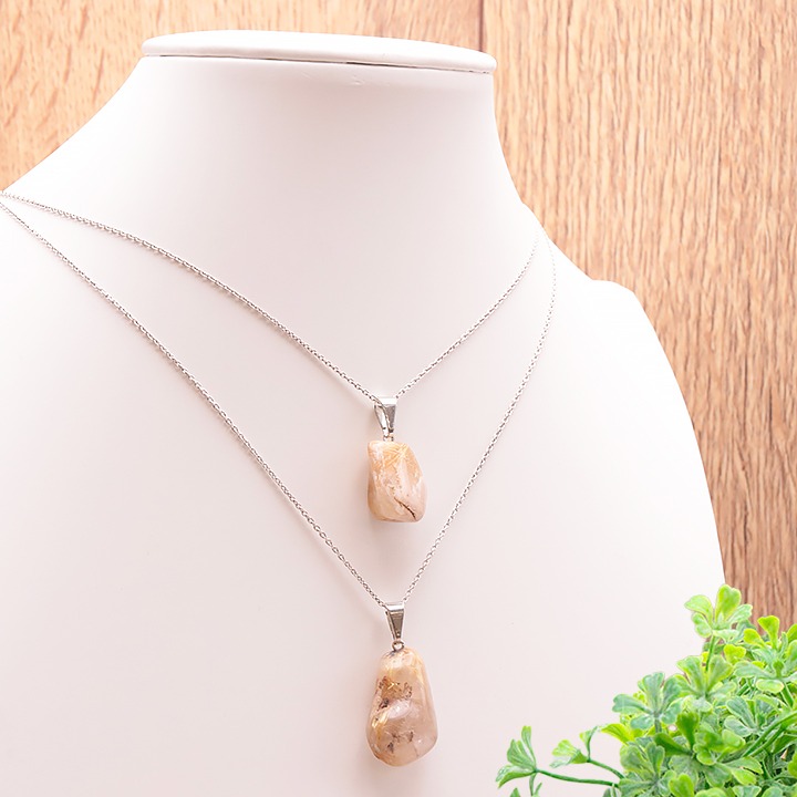 En lithothérapie, le pendentif pierre roulée cristal de roche rutile agit comme un amplificateur énergétique.