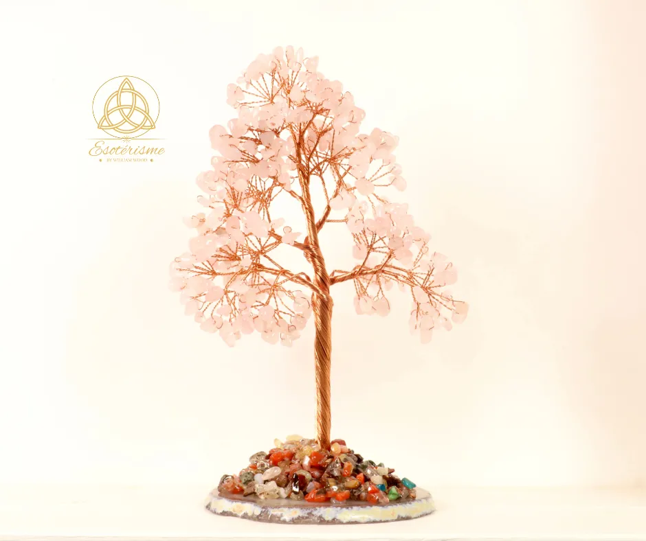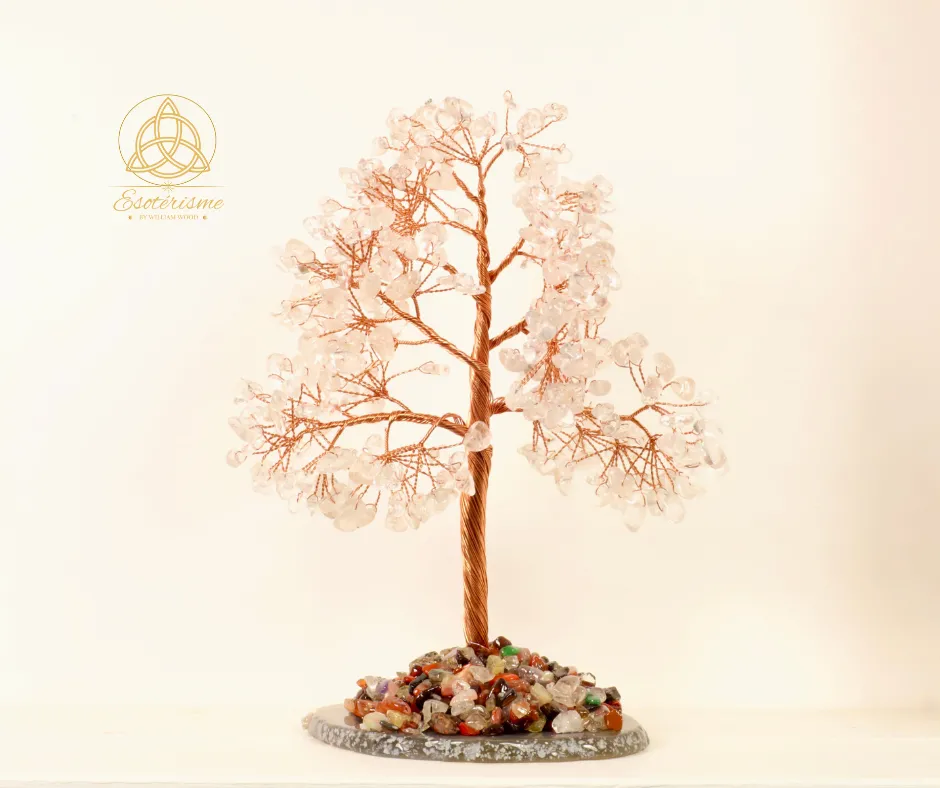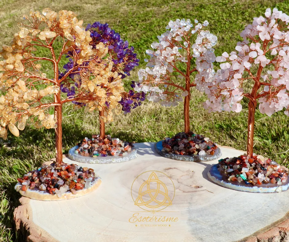 Cet arbre énergétique est un puissant objet décoratif et spirituel, confectionné à la main à partir de quatre pierres majeures en lithothérapie :