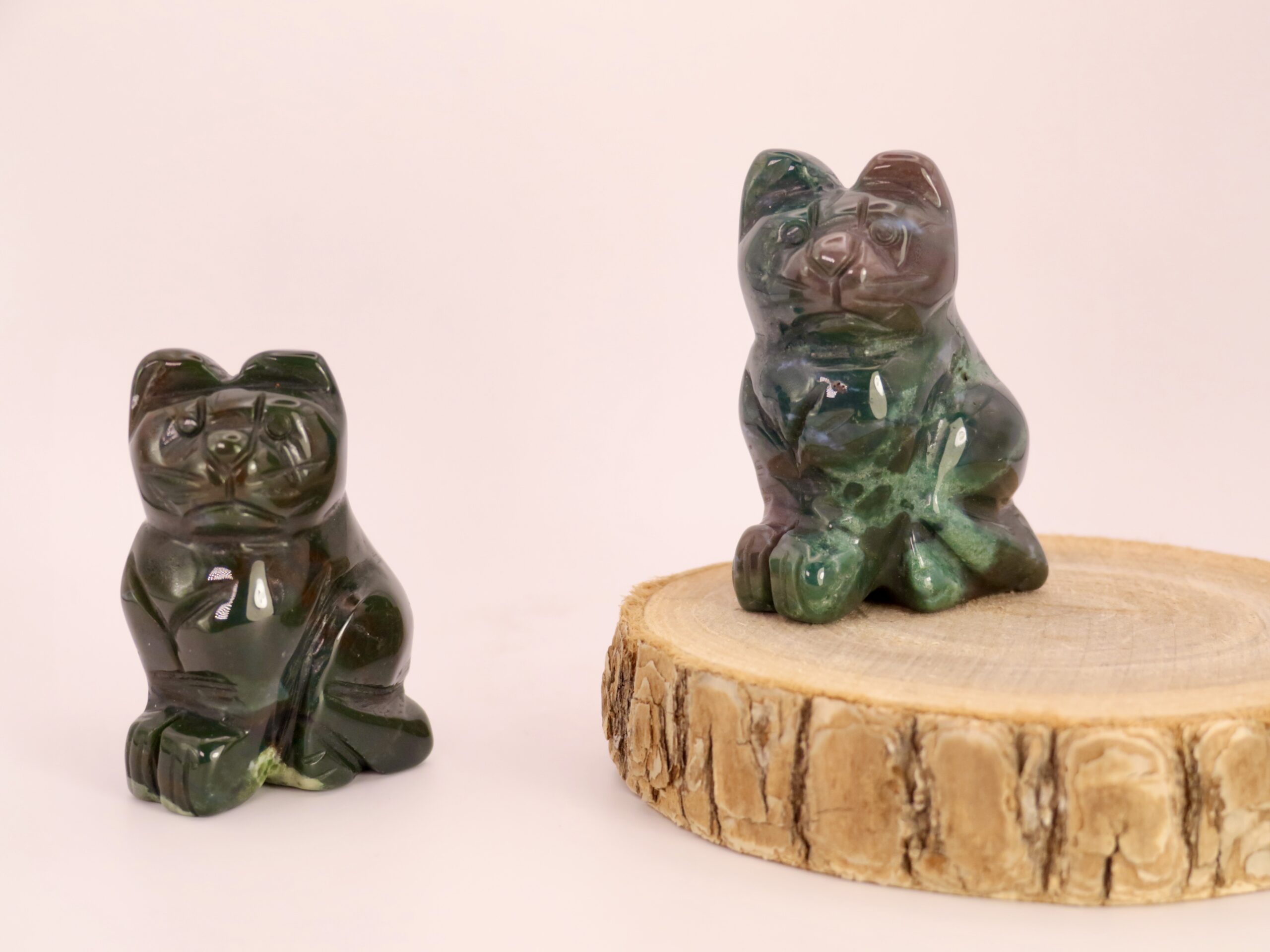 Le chat en agate mousse est parfait pour instaurer une ambiance apaisante dans un lieu. Il combine douceur, stabilité et symbolique protectrice.