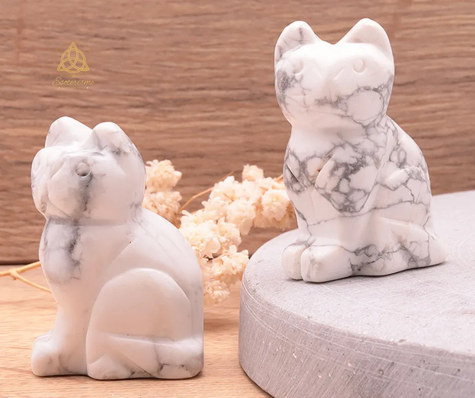 Lorsqu’il est associé à la howlite blanche, le chat devient un véritable protecteur émotionnel. Il invite alors à avancer avec confiance, calme et discernement, tout en restant fidèle à soi-même.