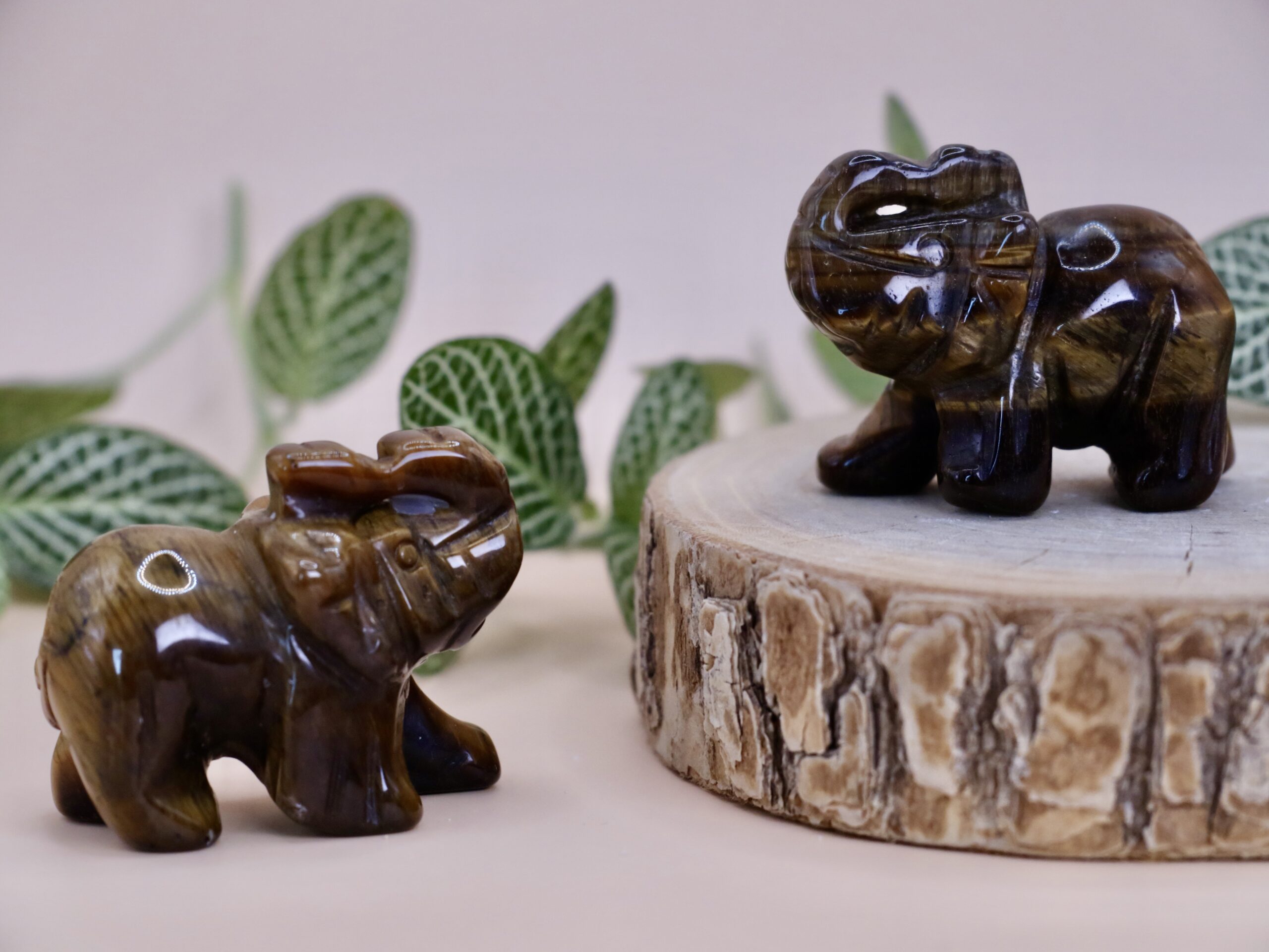 L’éléphant en œil de tigre est à la fois élégant et spirituellement puissant.