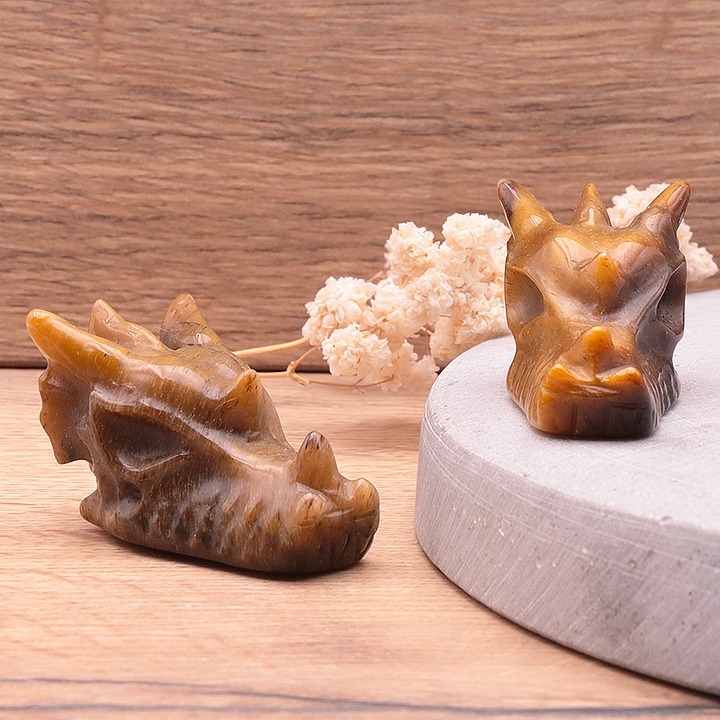 La Tête de dragon œil de tigre apporte protection, courage et stabilité intérieure. Elle renforce la confiance en soi, améliore la clarté mentale et repousse les énergies négatives. Cette sculpture est idéale pour garder le contrôle émotionnel, rester ancré et affirmer sa force personnelle.