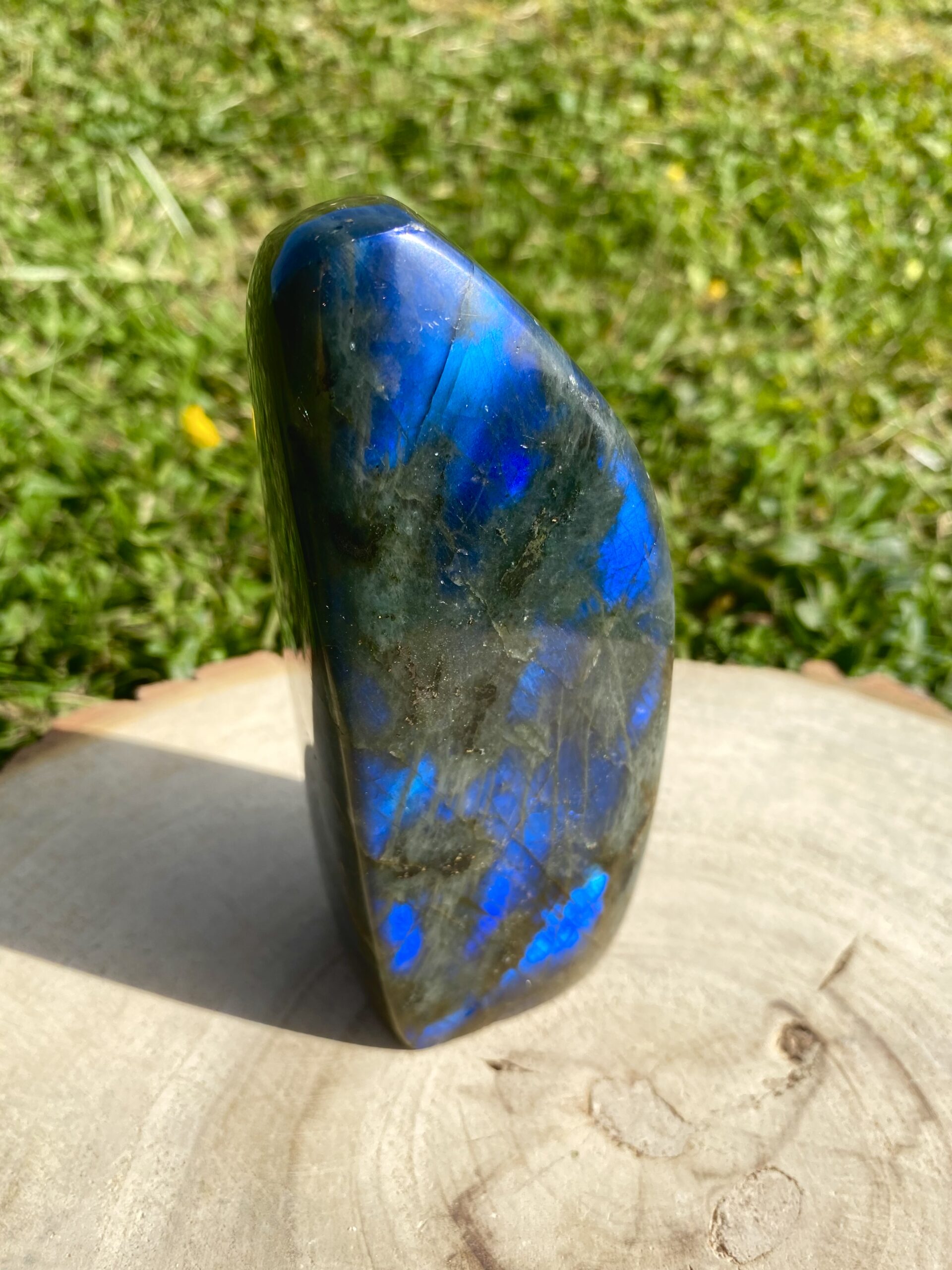 Forme libre labradorite bleue : protection, intuition & équilibre