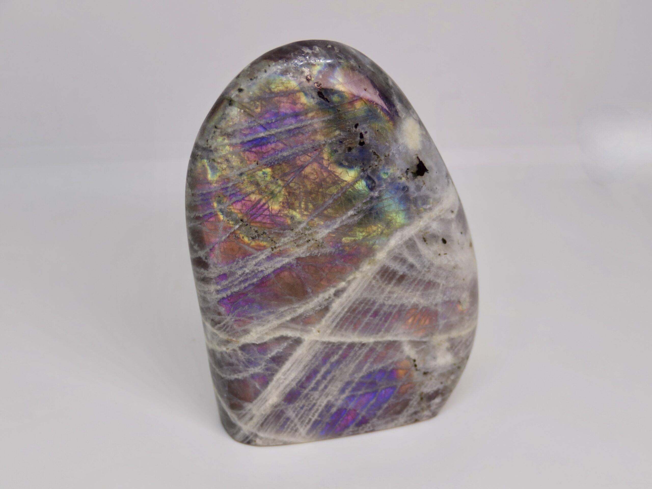 Placée dans une pièce, la Labradorite Violette en forme libre apporte une ambiance apaisante et clarifie l’espace énergétique.