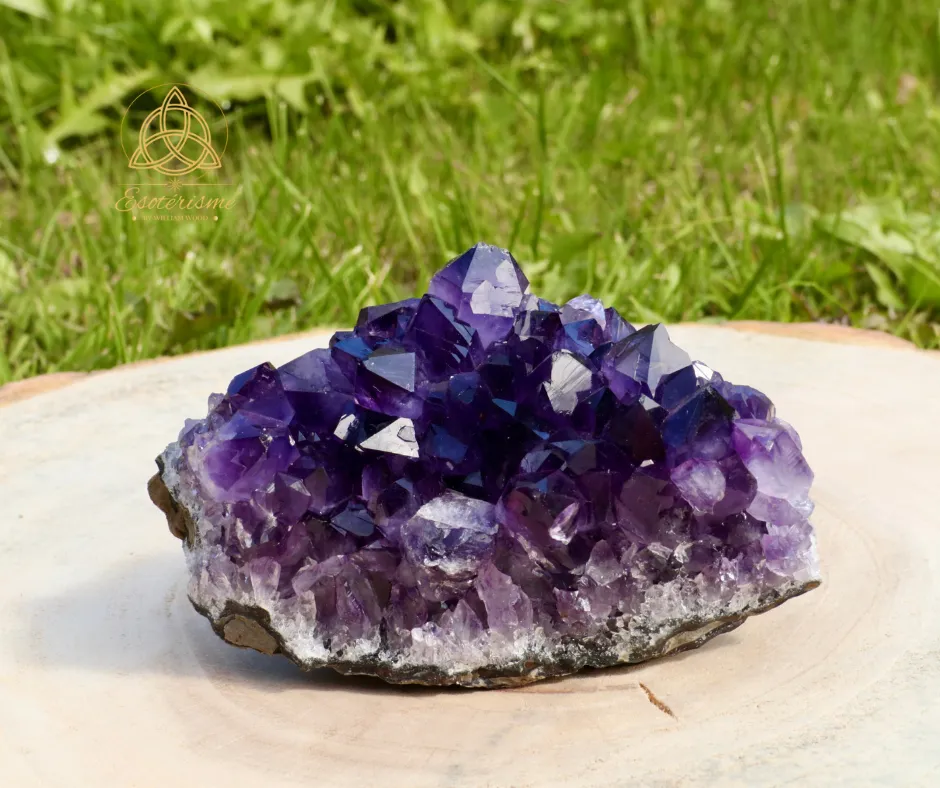 Chakra coronal (Sahasrara) : situé au sommet du crâne, il favorise la sagesse, la conscience spirituelle et l’harmonie intérieure. L’améthyste aide à la libération de sérotonine, améliorant ainsi l’humeur.