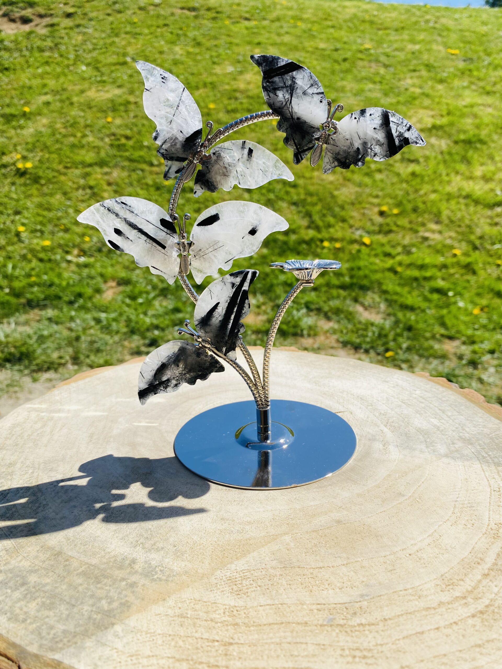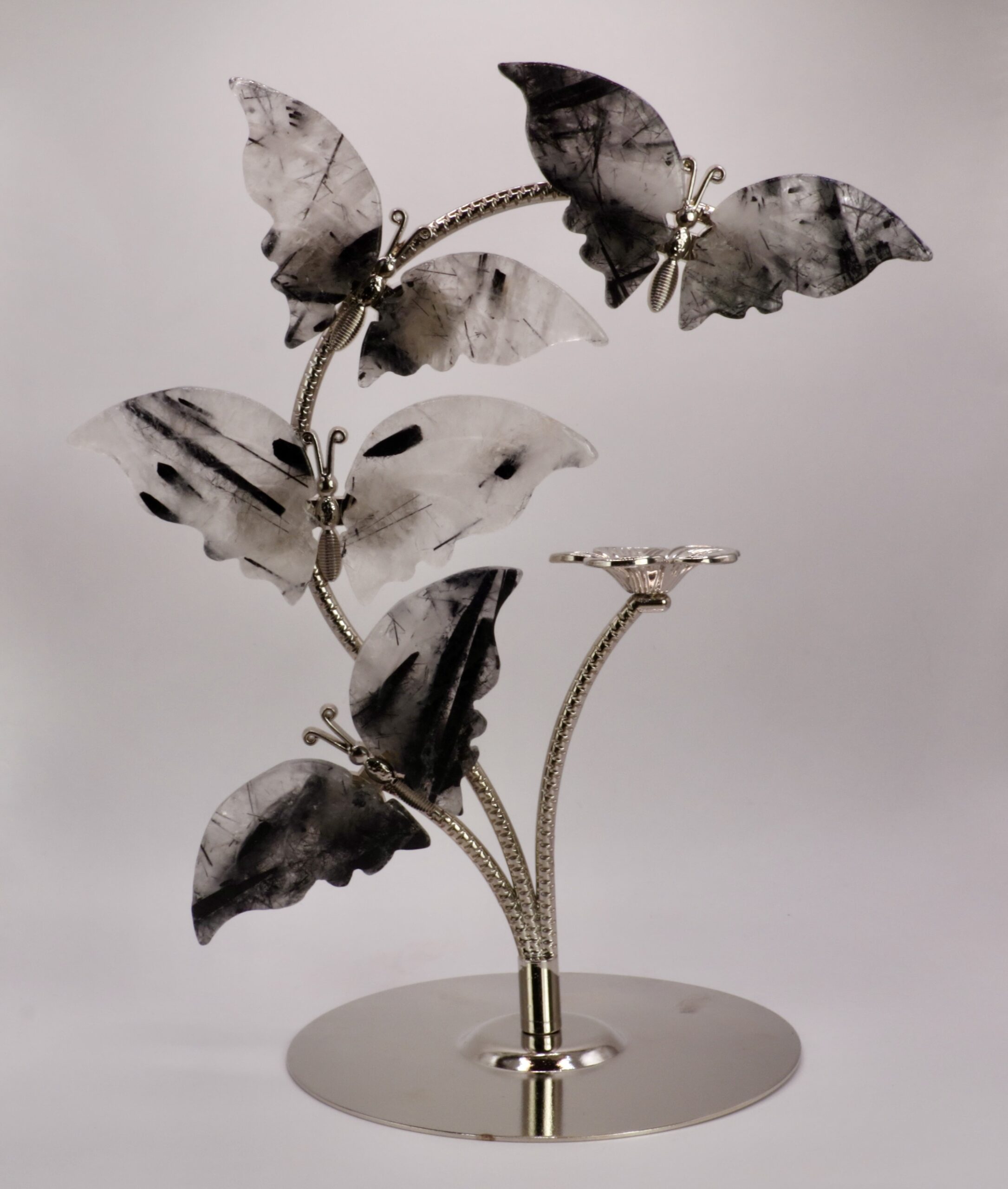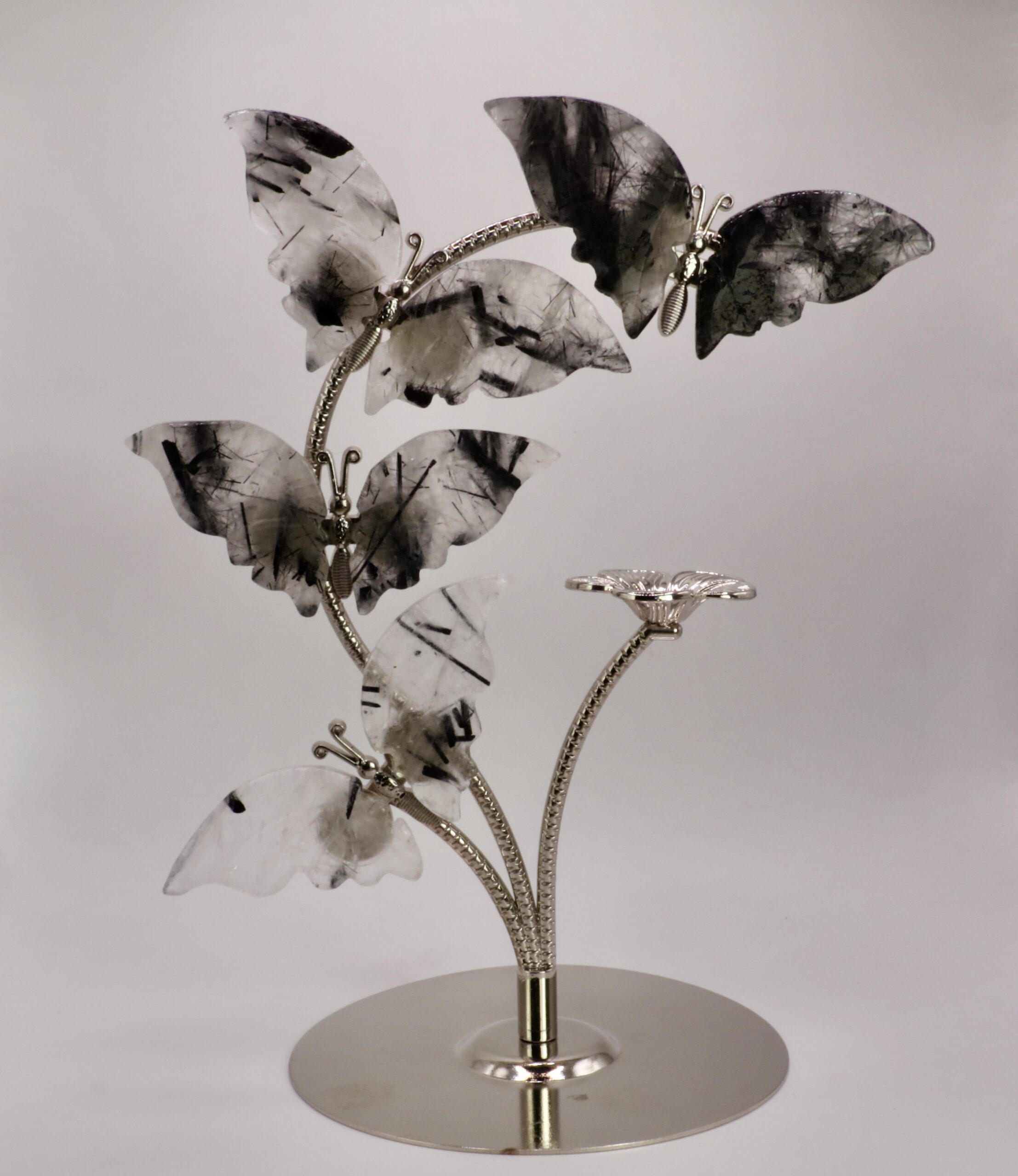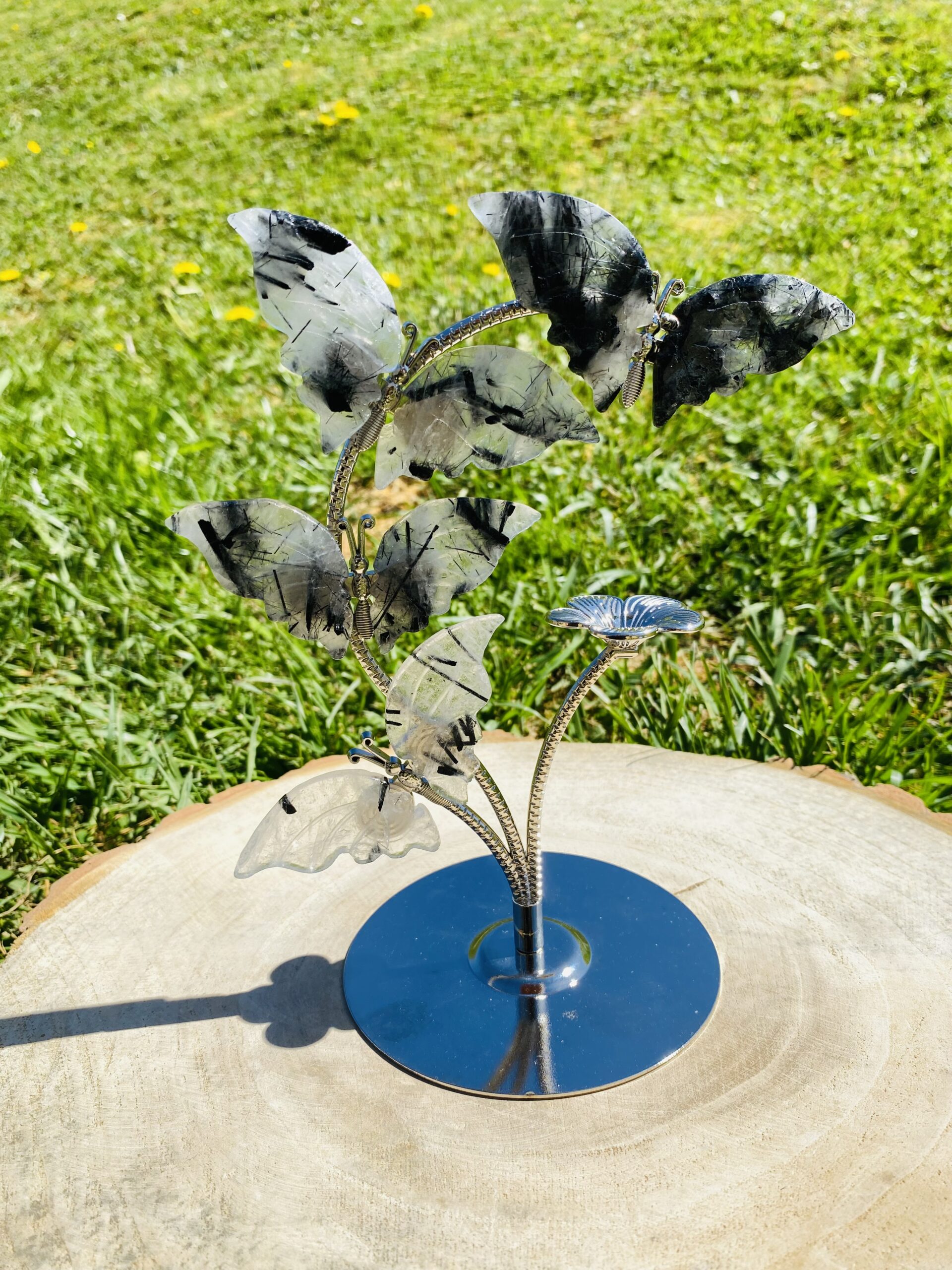 Papillon cristal de roche tourmaline : protection, purification & équilibre