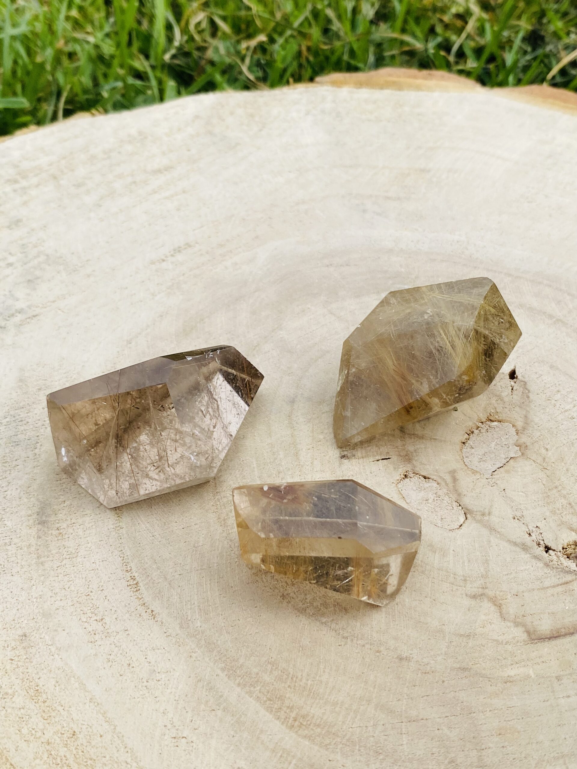 Cristaux taillés cristal de roche rutile : clarté, énergie & protection