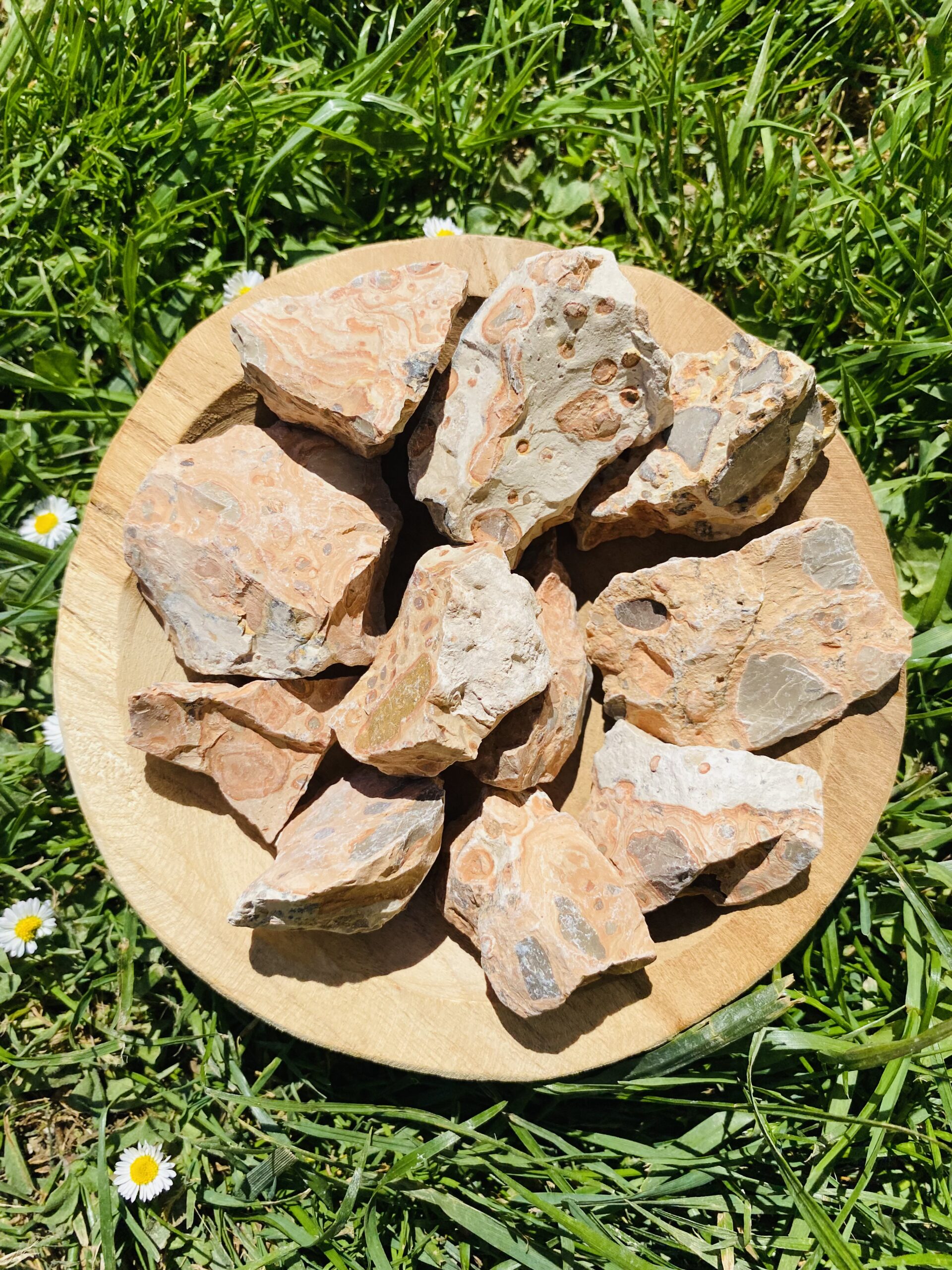 La pierre brute jaspe léopard est une pierre d’ancrage et de vitalité très appréciée en lithothérapie. Avec ses motifs uniques rappelant le pelage du léopard, elle symbolise la force, l’instinct et la connexion à la nature.