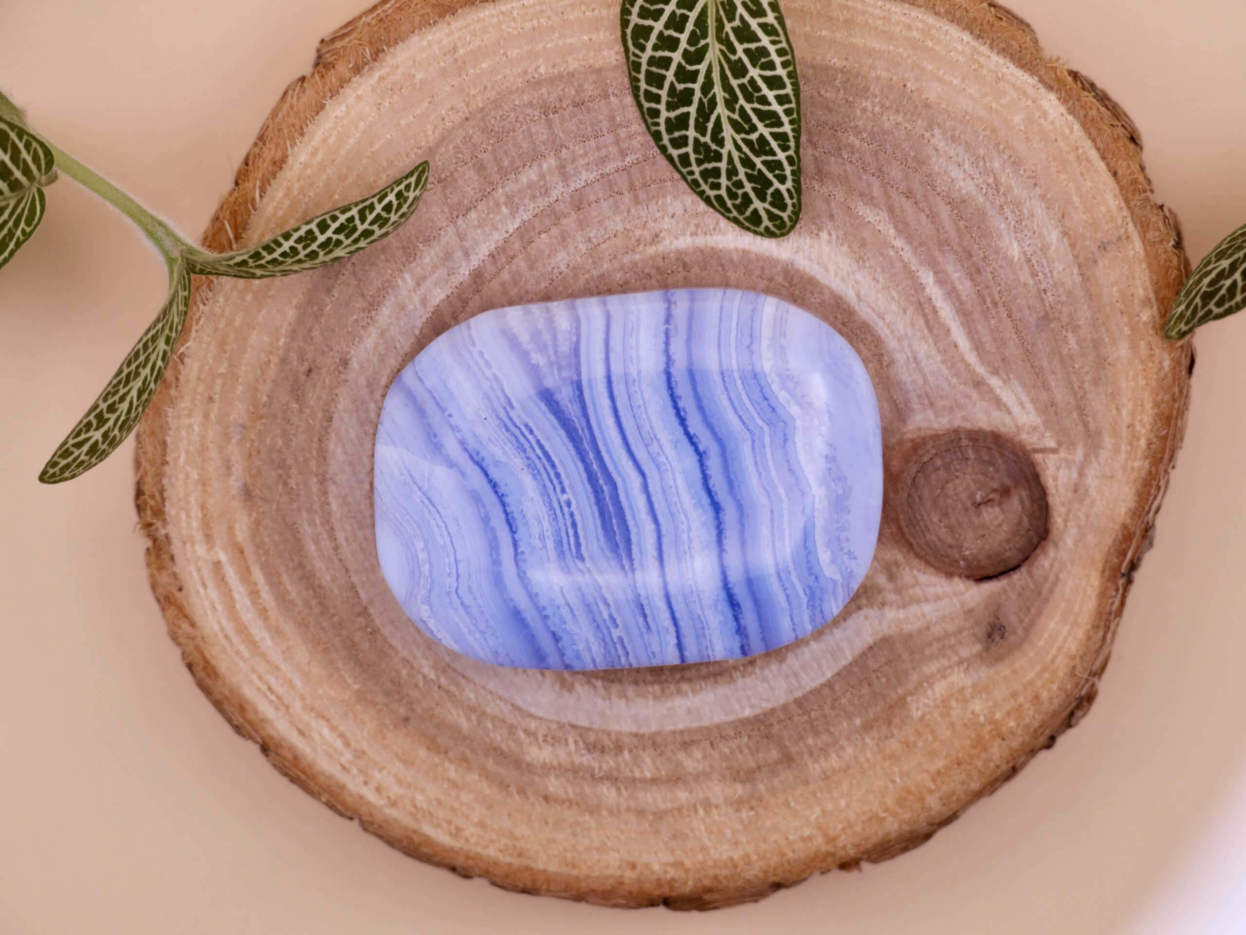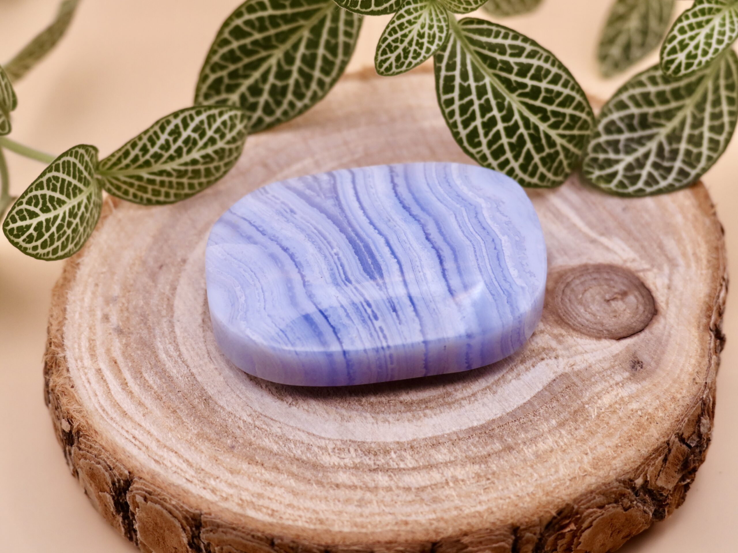 Pierre plate en calcédoine bleue : douceur et sérénité