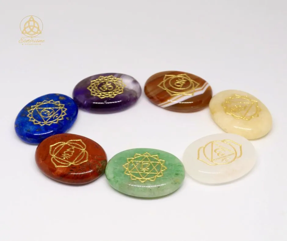 Découvrez nos pierres plates en lot 7 chakras gravé A