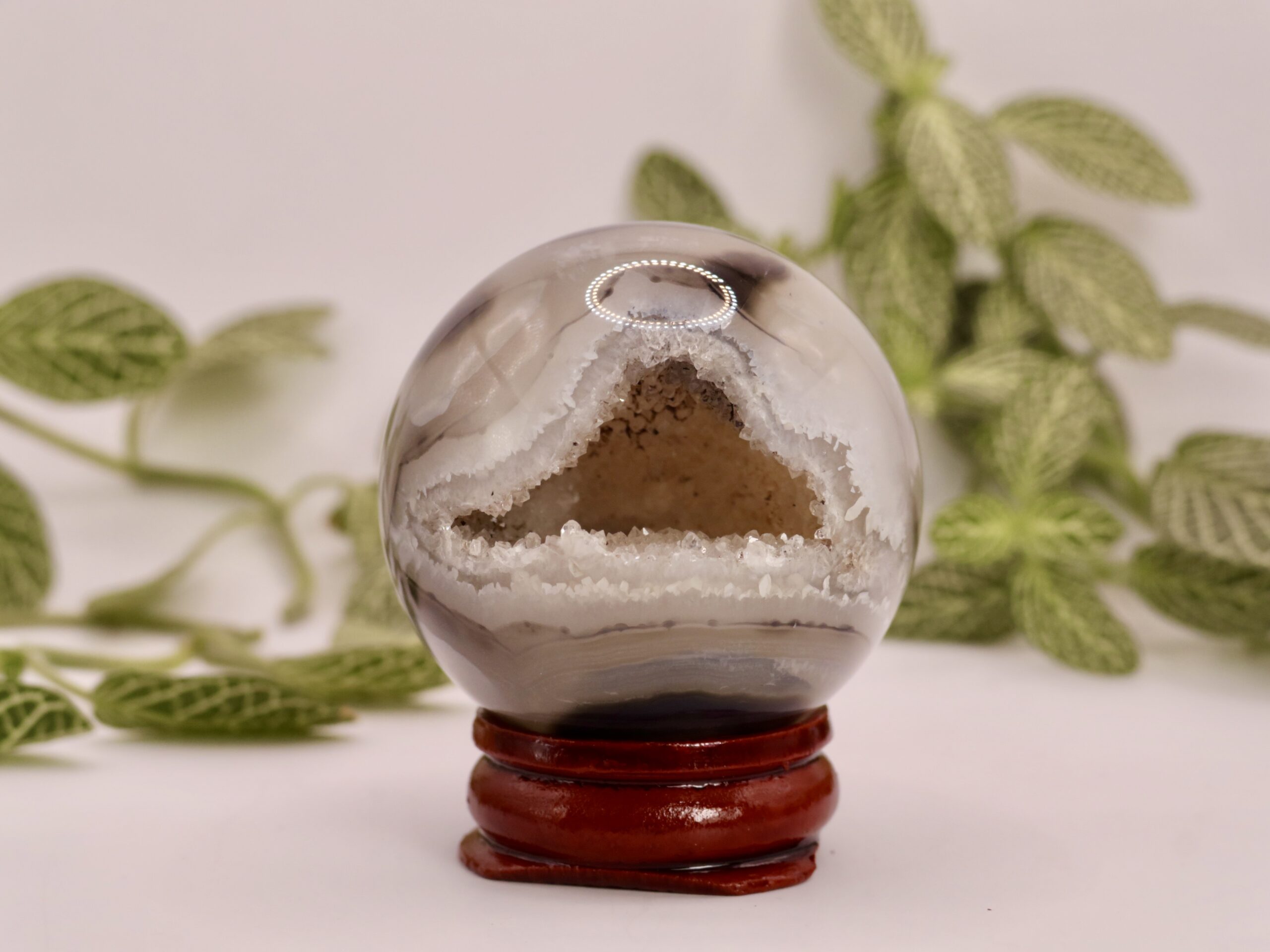 Ajoutez cette sphère agate noire à votre quotidien et laissez son énergie vous protéger et vous stabiliser.