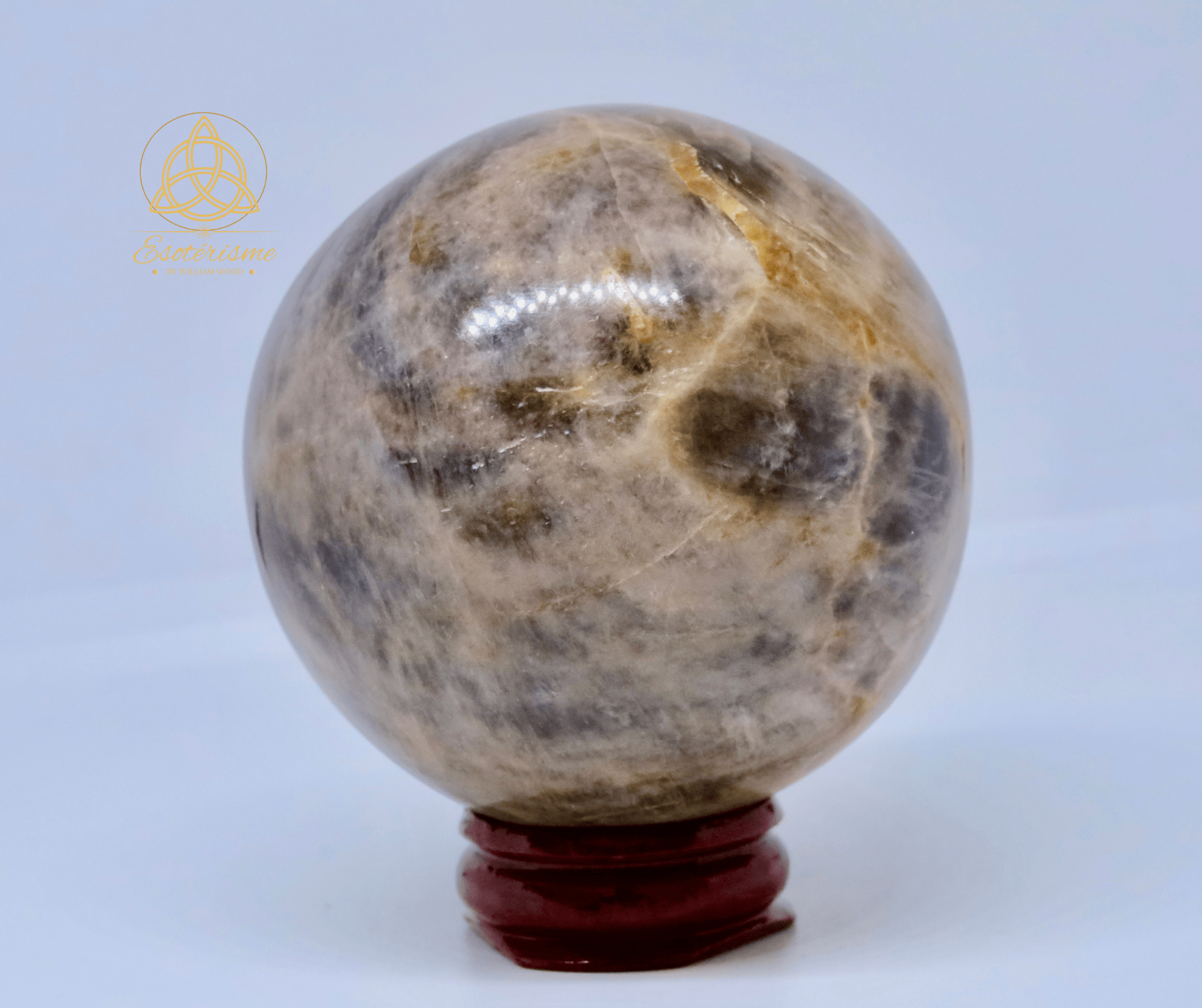 Sphère en Pierre de Lune Brune – Équilibre, Intuition et Harmonie intérieure
